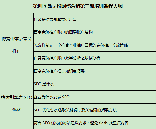 鑫靈銳一直踐行“以人為本,客戶至上”的服務(wù)理念,第四季第二期武漢鑫靈銳網(wǎng)絡(luò)營(yíng)銷規(guī)劃課于11.16日如期開課,并順利完成。本次培訓(xùn)課的主要內(nèi)容是搜索引擎營(yíng)銷之SEO優(yōu)化和競(jìng)價(jià)推廣