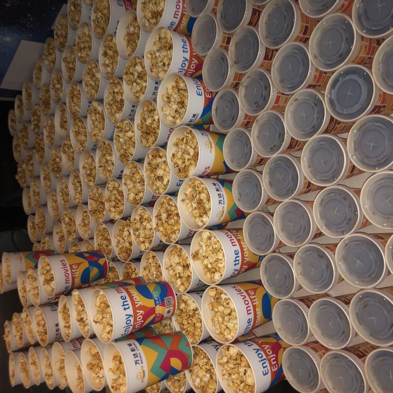 進入電影放映廳前,每人可領(lǐng)取一份可樂+爆米花,看看這爆米花的顏色,有沒有感覺心動呢,公司的福利也太好了吧。