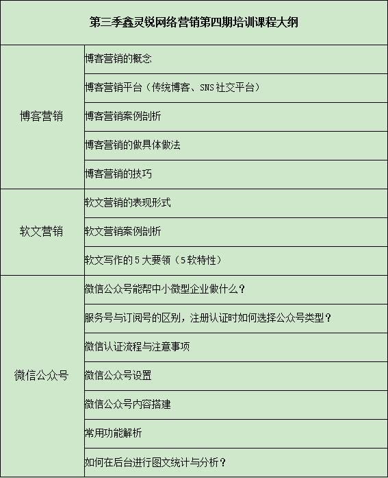 開(kāi)啟企業(yè)網(wǎng)絡(luò)營(yíng)銷(xiāo)新時(shí)代--為了更好的體現(xiàn)“以人為本,客戶(hù)至上”的服務(wù)理念,第三季第4期武漢鑫靈銳網(wǎng)絡(luò)營(yíng)銷(xiāo)規(guī)劃課于8.17日如期開(kāi)課,并順利完成。本次培訓(xùn)課的主要內(nèi)容是網(wǎng)絡(luò)營(yíng)銷(xiāo)之博客營(yíng)銷(xiāo)、軟文營(yíng)銷(xiāo)、QQ營(yíng)銷(xiāo)、視頻推廣等推廣的相關(guān)內(nèi)容。